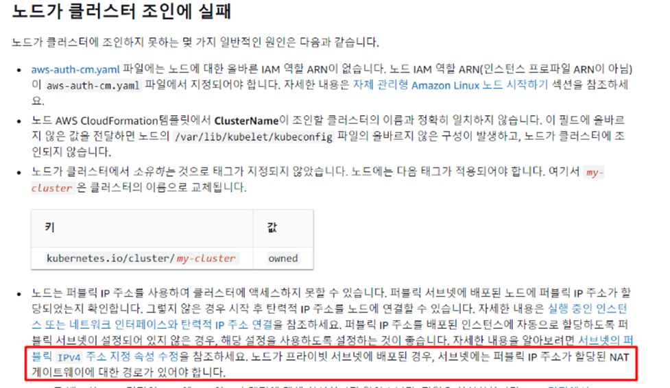 (참고 링크 : https://docs.aws.amazon.com/ko_kr/eks/latest/userguide/troubleshooting.html )
