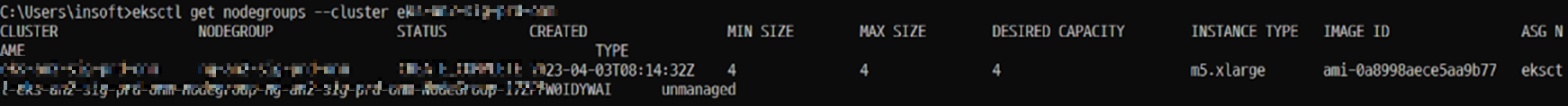 # eksctl get nodegroups --cluster [CLUSTER NAME]
