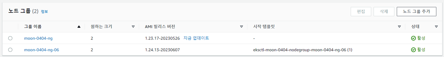 - 노드그룹 버전 확인
